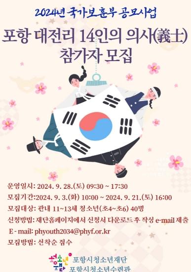 포항시청소년재단 청소년수련관은 오는 3일부터 21일까지 우리 지역 독립의사들의 애국애족의 정신을 느낄 수 있는 프로그램에 참가할 청소년을 모집한다.