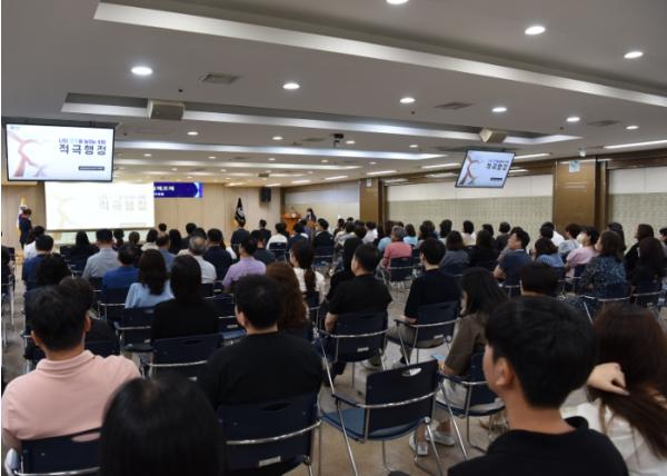 특히 강사는 급변하는 시대 환경 속 공무원들의 적극행정과 조직혁신 마인드 함양의 중요성을 강조했으며 적극행정 실천을 통한 개인의 행복 및 업무 만족도 향상, 적극행정 지원제도, 적극행정 우수 공무원 선발 제도 등을 설명하며 직원들의 적극행정 의지를 고취시켰다.