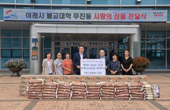 여래사 불교대학 및 신도 모임 무진등은 지난 2일 부산 동구에 추석 맞이 사랑의 성품을 기부했다.