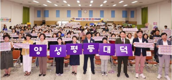 대전 대덕구는 양성평등주간(9.1.~9.7.)을 맞이해 3일 구청 청렴관에서 지역 내 여성단체 및 지역주민 등 150여 명이 참여한 가운데 ‘함께 일하고, 함께 돌보는 양성평등 대덕’이라는 주제로 기념행사를 개최했다.