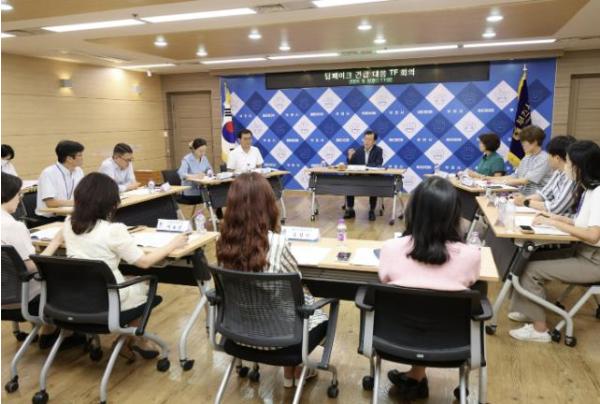이날 태스크포스(TF, 전담조직) 회의에는 피해예방·지원분야 등 6개 분야로 구성된 9개 부서(자치분권과, 스마트도시과, 정보통신과, 평생교육과, 미래세대지원과, 여성가족과, 건강도시과, 예산법무과, 홍보담당관)가 참석했다.