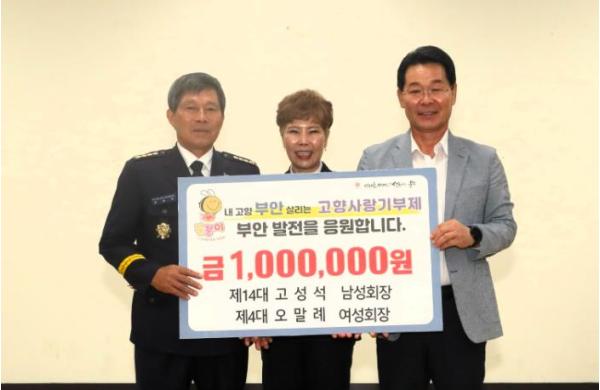 이·취임식에서 제14대 고성석 남성회장과 제4대 오말례 여성회장이 회장직 이임과 함께 지역 사랑을 실천하기 위해 부안군에 고향사랑기부금을 기탁 했으며, 제5대 박영춘 여성회장 역시 회장직 취임과 함께 부안군의 안전과 지역사회 발전을 위해 최선을 다하겠다는 의미로 고향사랑기부금을 기탁 했다.