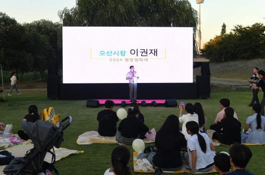 오산시는 지난달 30일 오산천(오산오색문화체육센터 뒤편) 일원에서 '2024 오산천 별밤영화제'의 개막식을 성황리에 개최했다.
