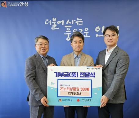 경기도를 대표하는 버스 운송업체인 ㈜대원고속은 경기도 내 시군에 매년 설·추석 명절에 온누리 상품권을 기부해오고 있다. 이번에도 안성시에 온누리 상품권 500매를 기부하며 지역경제활성화와 더불어 취약계층에 도움이 되길 바란다고 전했다.