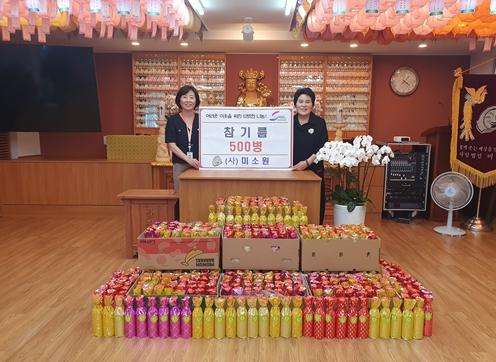사단법인 미소원은 지난 4일, 부산 동구(구청장 김진홍)에 추석맞이 사랑의 성품 참기름 500병을 기탁했다.