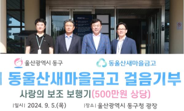 동울산새마을금고(이사장 김치규)는 9월 5일 오전 9시 동구청 광장에서 500만원 상당의 어르신 보행기 31대를 동구청에 전달했다.