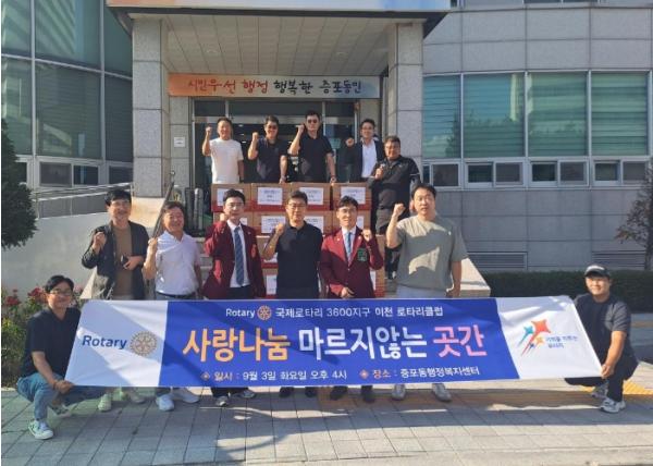 증포동은 지난 4일 국제로타리 3600지구 이천클럽이 추석을 맞이하여 식료품 20상자를 증포동행정복지센터에 기탁했다고 전했다.