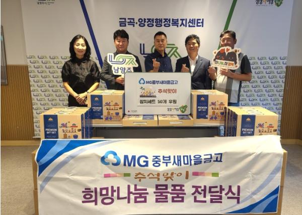 남양주시 금곡양정행정복지센터는 10일 추석 명절을 맞아 MG중부새마을금고가 취약계층을 위한 참치 세트 50개를 금곡동에 지정 기탁했다고 밝혔다.