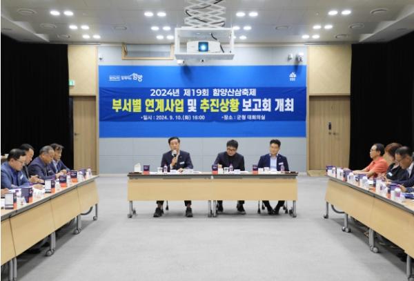 함양군은 10일 오후 군청 대회의실에서 오는 10월 3일부터 9일까지 상림공원 일원에서 열리는 제19회 함양산삼축제의 성공적인 개최를 위한 부서별 연계사업 및 추진 상황 보고회를 개최했다.