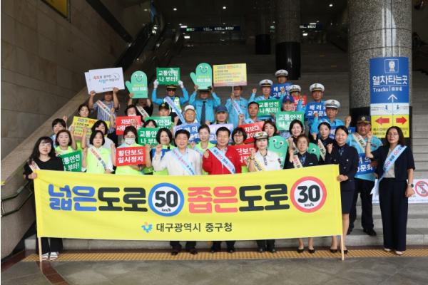 대구 중구는 11일 대구역 광장에서 중부경찰서, 대구안전생활실천시민연합회, 모범운전자회, 관계자 등 40여 명과 합동으로 추석 맞이 교통안전 캠페인을 실시했다.