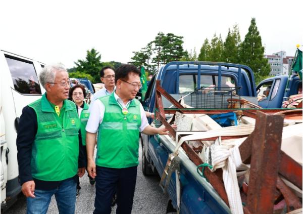 윤창수 새마을지도자 울진읍협의회장은 경과보고를 통해 “울진군 새마을지도자들이 지난 1년 동안 생활 주변에 사장되거나 무분별하게 버려진 고철, 파지, 헌 옷, 농약병, 폐비닐 등 각종 폐자원을 꾸준히 수거하여 쾌적한 환경을 조성하고 기후 위기 극복에 기여하기 위해 이번 행사를 준비했다” 라고 전했다.