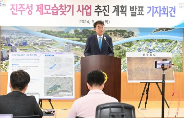 차석호 진주시 부시장은 12일 기자회견을 통해 ‘진주성 제모습 찾기 사업’에 대해 2025년까지의 계획과 중·장기적 계획을 발표했다.