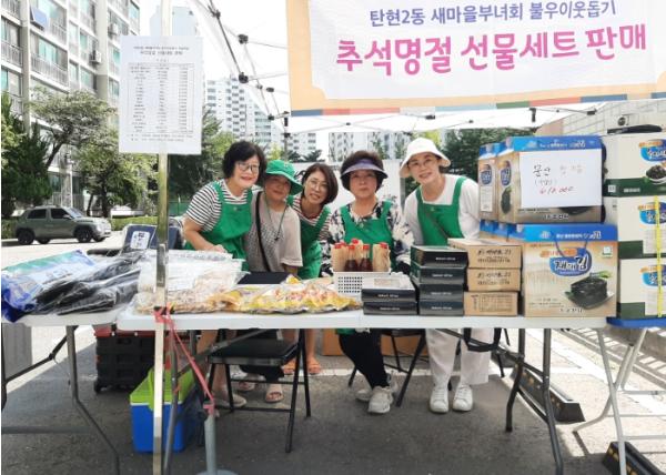 고양특례시 일산서구 탄현2동 새마을부녀회는 지난 10일과 11일 이틀간에 걸쳐 큰마을 아파트 단지에서 추석 명절을 맞이해 ‘불우이웃 돕기 추석 명절 세트 판매’ 행사를 펼쳤다.
