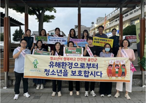 이번 활동은 울진경찰서, 울진교육지원청, 울진군청소년상담복지센터 등 유관기관과 합동점검반을 구성하여 울진초·중·고등학교 주변에서 청소년 유해환경 캠페인을 펼쳤다. 이번 활동은 학교 주변 및 상가 밀집 지역을 중심으로 청소년 유해환경 OUT 리플릿을 배부하고, 19세 미만 술·담배 판매금지 스티커를 부착했다.