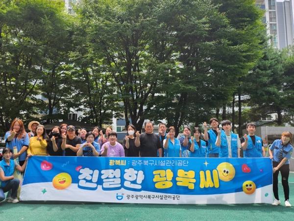 광주광역시북구시설관리공단이 지난 11일 두암주공2단지 내 주차장에서 지역 어르신, 장애인, 아동 등 취약계층 약 400여명을 대상으로'참! 좋은 사랑의 밥차'무료 급식 자원봉사활동에 참여했다.