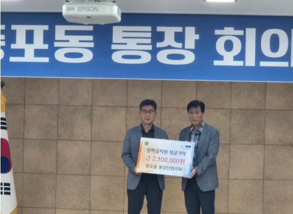한만준 증포동장은 “항상 주민들을 위하여 힘써 주시는 증포동 통장단협의회 통장님께 감사드리며, 장학금이 취약계층 학생들에게 큰 힘이 되어 증포동의 든든한 인재로 자라길 바란다”라고 했다.