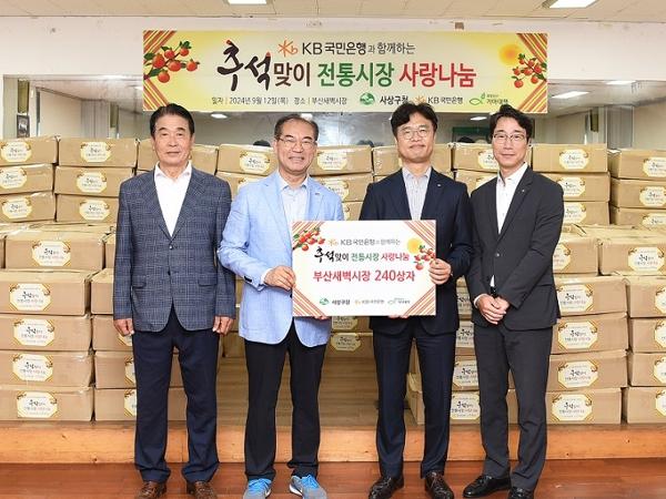 부산 사상구는 추석을 맞아 KB국민은행 부울경사상10PG지역본부로부터 전통시장 농산물꾸러미 240박스를 전달 받았다고 12일 밝혔다.