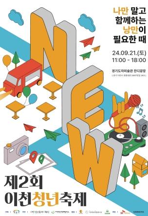 이천시는 청년의 날을 맞이하여 오는 9월 21일(토) 경기도자미술관 앞 잔디광장에서 제2회 이천청년축제(부제: 뉴개념)를 개최한다고 밝혔다.