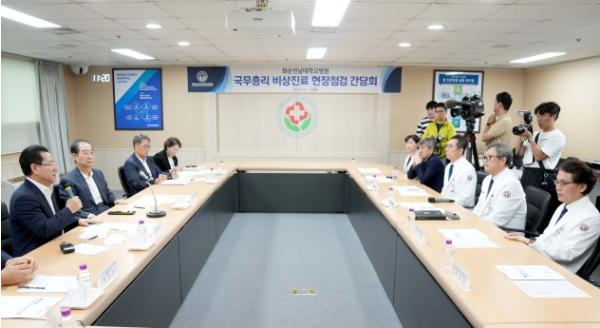 간담회에선 심종섭 국무조정실 사회조정실장, 구복규 화순군수, 정신 전남대병원장, 민정준 화순전대병원장 등 20여 명이 함께해 지역 비상진료 대응상황을 살피고, 필수의료 강화를 위한 현안 과제도 논의했다.
