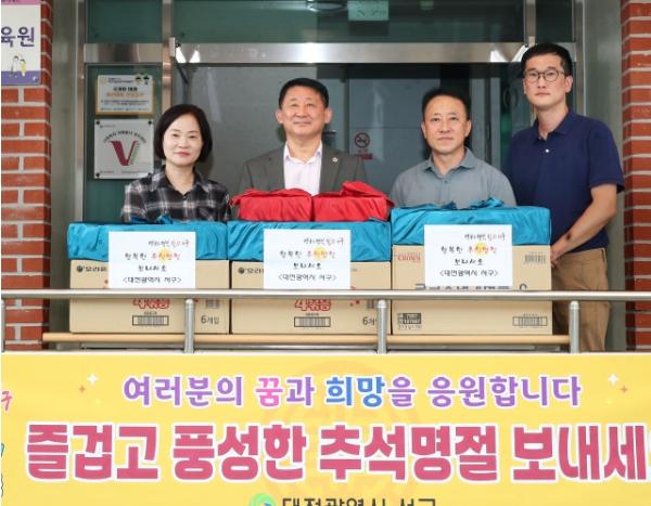 대전 서구는 지난 12일 추석 명절을 앞두고 시온보육원을 비롯한 아동생활시설 7개소를 방문하여 아이들과 종사자를 격려하고 위문품을 전달했다.
