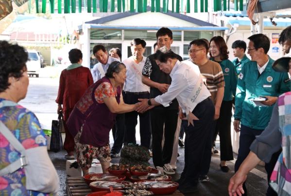 공영민 군수는 소비둔화와 물가 상승으로 어려움을 겪고 있는 전통시장 상인들을 만나 생활 속 불편사항과 애로사항을 청취하고 격려했다.