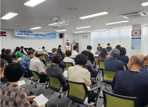 부산 사상구는 지난 12일 주례2동행정복지센터에서 ‘주례동 도시재생활성화계획 수립’에 대한 지역주민과 전문가의 다양한 의견을 수렴 하기 위해 주민공청회를 개최했다.