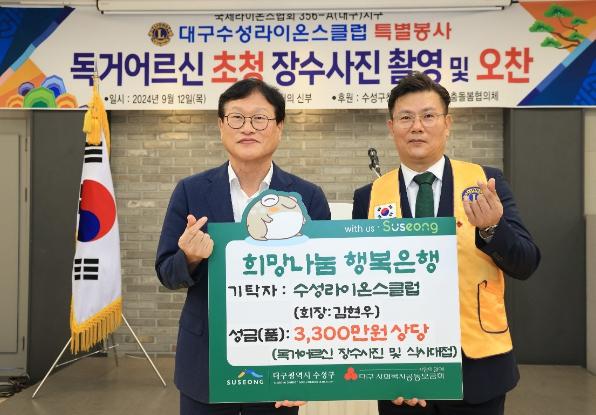 김대권 수성구청장은 “봉사와 나눔을 실천한 귀한 자리를 마련해주신 대구수성라이온스클럽에 깊은 감사를 드린다”며 “앞으로 더욱 촘촘한 사회복지 안전망을 구축해 어르신들이 건강하고 행복한 노년을 보내실 수 있도록 최선을 다하겠다”고 말했다.