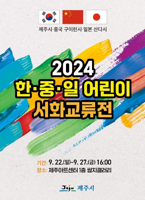 제주시는 9월 22일부터 9월 27일까지 6일간 제주아트센터 쌈지갤러리에서 '2024 한중일 어린이 서화 교류전'을 개최한다.