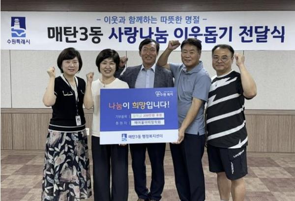 수원시 영통구 매탄3동의 매여울아띠장학회는 지난 13일 지역 내 저소득 청소년들을 지원하기 위해 총 200만원의 장학금을 후원하였다.