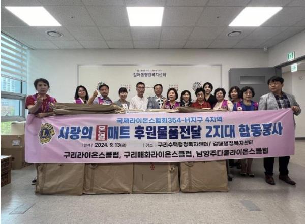 구리시 갈매동행정복지센터는 지난 13일, 국제라이온스협회 354-H지구 4지역 2지대의 후원물품 전달식을 진행했다.