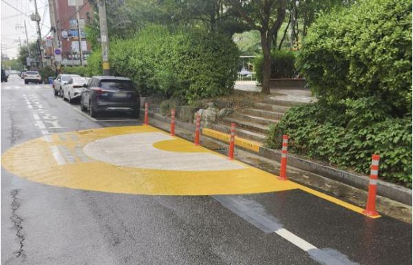 이면도로와 인접한 어린이공원 출입구 노면에 무지개 모양의 노면표지를 설치해 운전자의 시인성을 확보하고 사고 경각심을 높여 어린이 보행 교통사고를 예방하는 게 핵심 내용이다.