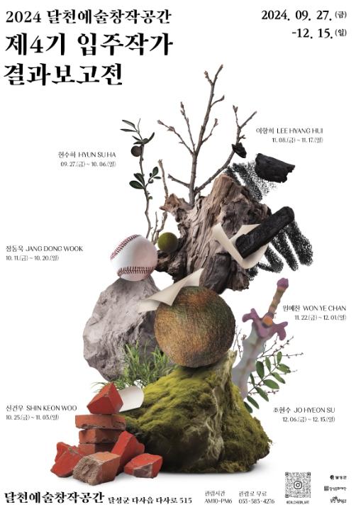 달성군 (재)달성문화재단이 운영하는 복합문화공간 달천예술창작공간에서 9월 27일에서 12월 15일까지 ‘2024 달천예술창작공간 제4기 입주작가 결과보고전’을 개최한다.