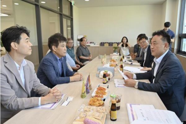 ㈜농업회사법인 거산 최규춘 대표는 유통을 위한 선별, 세척, 포장 등의 유통시설 안내와 자사 제품 및 브랜드에 대해 홍보했으며, 북내면 마을 이장들과 함께 여주 고구마 산업 및 기업 운영의 어려움에 대해 함께 토론했다.