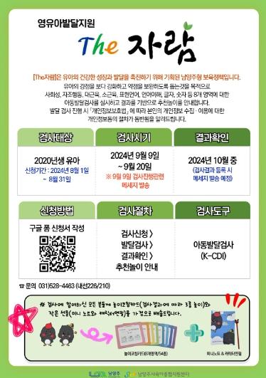 남양주시는 오는 31일까지 3세(2020년생) 유아를 대상으로 ‘The자람’사업 발달검사를 신청·접수한다고 12일 밝혔다.