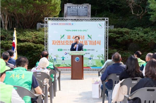 통영시는 지난 11일 용화사 광장에서 자연보호통영시협의회 등 기관·단체, 시민 등 100여 명이 참석한 가운데 제46주년 자연보호헌장 선포 기념식을 개최했다.