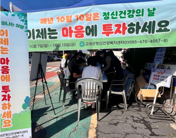 고성군은 10월 10일 10:00~12:00 고성읍 보건지소 앞에서 정신건강 홍보 캠페인을 실시했다.