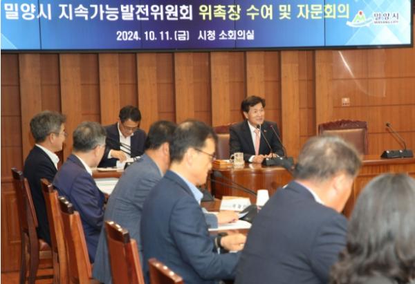 이날 위원 위촉장 수여와 함께 밀양시 지속가능 발전 기본전략 수립과 관련한 자문회의도 연이어 진행됐다. 위원들은 지속가능 발전 목표 달성을 위한 다양한 의견을 교환하고, 밀양시 발전 방향을 모색했다.