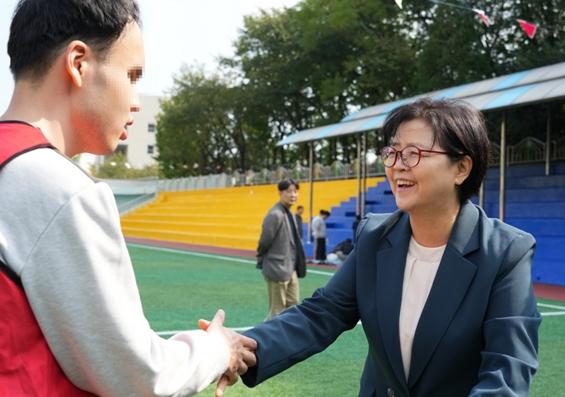 이순희 강북구청장이 지난 11일 강북구민운동장에서 열린 ‘장애인 명랑가족운동회’에 참석해 장애인들과 인사를 나누며 가깝게 소통했다.