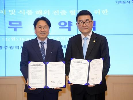 광주광역시는 12일 시청 비즈니스룸에서 광주 김치 및 식품의 해외진출 협력을 위해 세계한식총연합회와 업무협약을 체결했다.