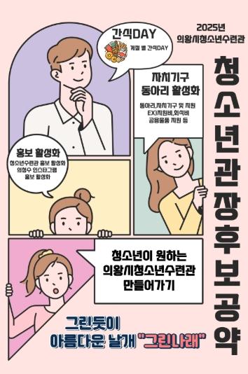 앞으로 의왕시청소년수련관은 새롭게 선출된 청소년관장과 함께 다양한 청소년 참여 프로그램을 운영하며 청소년이 주체가 되는 수련관으로 성장할 수 있도록 청소년이 주도하는 다양한 변화를 지속적으로 추진할 계획이다.