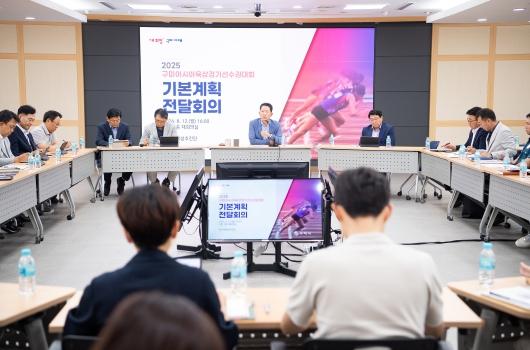 시는 12일 시청 대회의실에서 전 부서장 및 유관기관 관계자 등 100여 명이 참석한 가운데 '2025 구미아시아육상경기선수권대회'기본계획 전달회의를 개최했다.