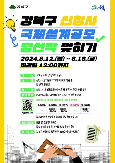서울 강북구가 강북구 신청사 건립사업에 대한 구민의 관심과 참여를 유도하고자 8월 12일부터 16일까지 5일간 디자인 선호도 조사를 실시한다.