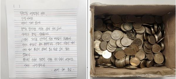 본인을 장애아동을 키우는 수급자이자 세 아이의 아빠라고 소개한 쪽지를 남긴 익명의 기부자는 지난 2022년 9월부터 지금까지 8번 익명 기부를 한 적이 있으며, 이번에는 어머니의 기일을 맞이하여 뜻깊은 일을 하고 싶다며 50원 동전으로 구성된 총 4만1백원의 금액을 기부했다.