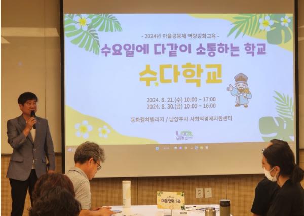 남양주시는 마을공동체와 시민들을 대상으로 2024년 마을공동체 역량강화교육‘수요일에 다같이 소통하는 학교’를 운영한다고 21일 밝혔다.