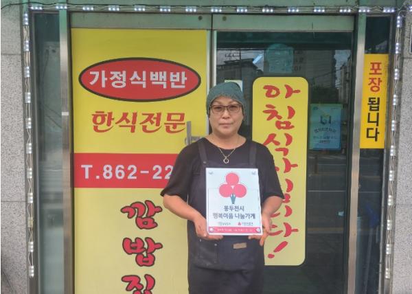 동두천시 보산동 행정복지센터는 19일, 보산동 소재 식당 ‘깜밥집’이 ‘행복이음 나눔가게’에 선정됐다고 밝혔다.