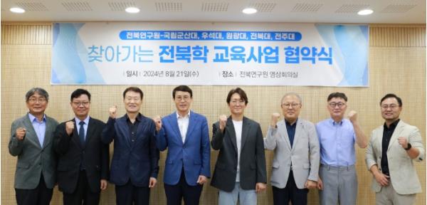 전북연구원(원장 이남호)은 21일 전북자치도내 5개 종합대학(국립군산대학교, 우석대학교, 원광대학교, 전북대학교, 전주대학교)과 전북학 교육사업 추진을 위한 교류·협력 업무협약을 체결했다.