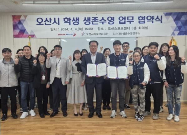 오산시시설관리공단이 관내 초등학생 생존수영 교육의 활성화를 위해 4일에 대한생존수영 연구소와 업무협약을 체결했다.