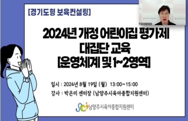 남양주시는 지난 19일과 21일 관내 어린이집 원장 및 보육 교직원 500여 명을 대상으로 ‘2024년 개정 어린이집 평가제 교육’을 실시했다.