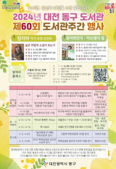 행사 관련 기타 자세한 사항은 대전 동구공공도서관 홈페이지에서 확인하거나 해당 도서관으로 문의하면 된다.