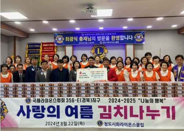 이번 기탁식는 소외된 이웃사랑을 실천하기 위한 후원사업의 일환으로 청도시화라이온스클럽 회원 30여 명이 참여해 직접 김치를 담가 여름 취약계층 100세대에 전달했다.